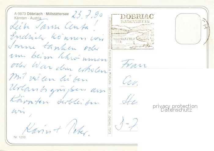 73597449 alte Postkarte D?briach Millst?ttersee postalisch gelaufen Erhaltung siehe scans [PaolaD17] KatCode: