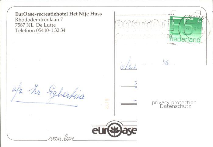old postcard De Lutte EurOase Recreatiehotel Het Nije Huss postalisch gelaufen Erhaltung siehe scans