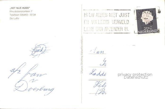 old postcard De Lutte Het nije Huss Garten postalisch gelaufen Erhaltung siehe scans