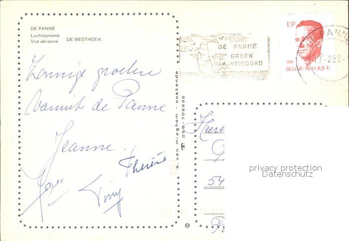 72394468 carte postale De Panne De Westhoek Luchtopname postalisch gelaufen Erhaltung siehe scans KatCode: 11070038000362