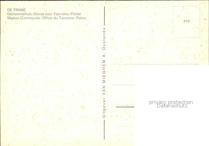 72270892 De Panne Gemeentehuis Dienst voor Toerisme Politie postalisch nicht gelaufen Erhaltung siehe scans KatCode: 11070038000362