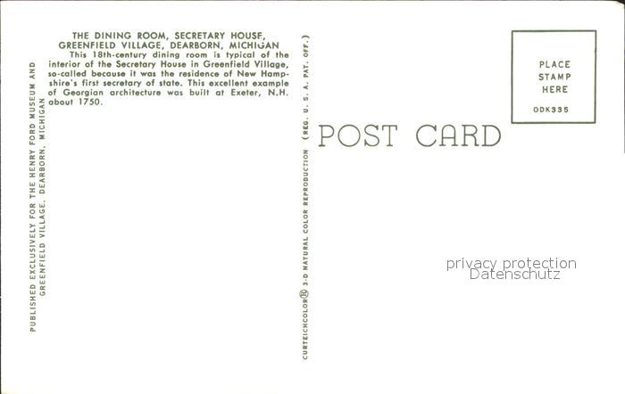 71990983 Dearborn Michigan Dining Room Greenfield Village Secretary House postalisch nicht gelaufen Erhaltung siehe scans KatCode: 14140240000000