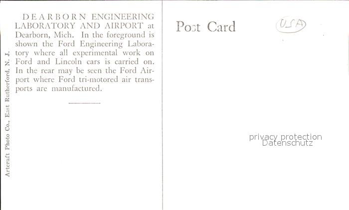 31735424 Dearborn Michigan Engineering Laboratory and Airport Fort Motor Company aerial view postalisch nicht gelaufen Erhaltung siehe scans KatCode: 14140240000000
