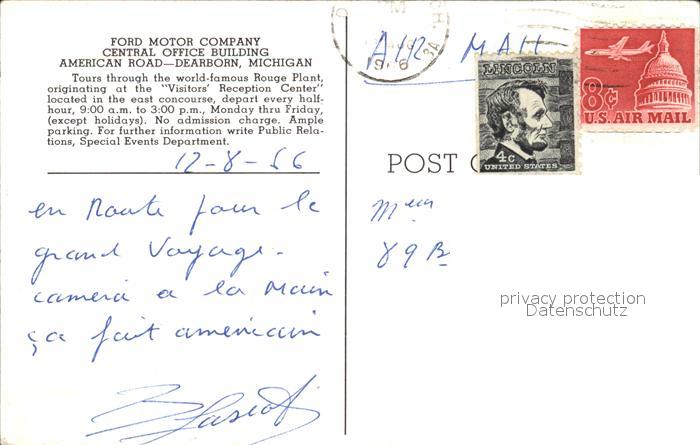 72460035 old postcard Dearborn Michigan Ford Motor Company Central Office Building postalisch gelaufen Erhaltung siehe scans KatCode: 14140240000000