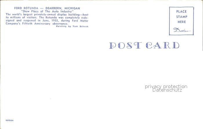 Dearborn Michigan Ford Rotunda Kuenstlerkarte