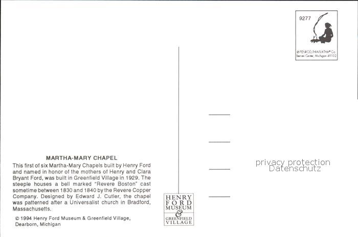 72556346 Dearborn Michigan Martha Mary Chapel postalisch nicht gelaufen Erhaltung siehe scans [AndreD76] KatCode: 14140240000000