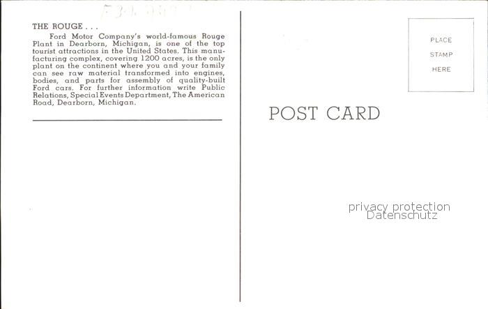 72230252 Dearborn Michigan The Rouge Fort Motor Company postalisch nicht gelaufen Erhaltung siehe scans KatCode: 14140240000000