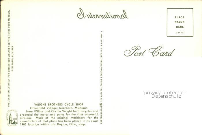 72562691 Dearborn Michigan Wright Brothers Cycle Shop postalisch nicht gelaufen Erhaltung siehe scans [KathaD79] KatCode: 14140240000000