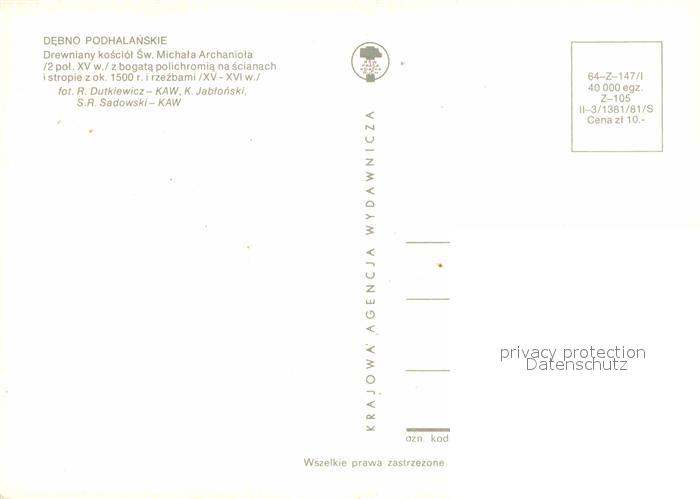 Debno Polen Podhala?skie alte Holzkirche postalisch nicht gelaufen Erhaltung siehe scans [LiesaD40]