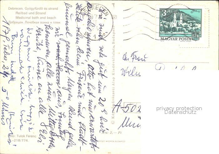 old postcard Debrecen Debrezin Gyogyfuerdoe es strand postalisch gelaufen Erhaltung siehe scans
