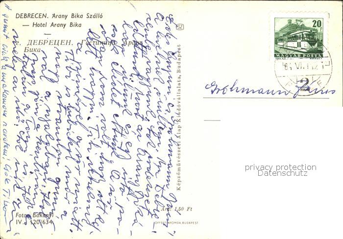 old postcard Debrecen Debrezin Hotel Arany Bika postalisch gelaufen Erhaltung siehe scans