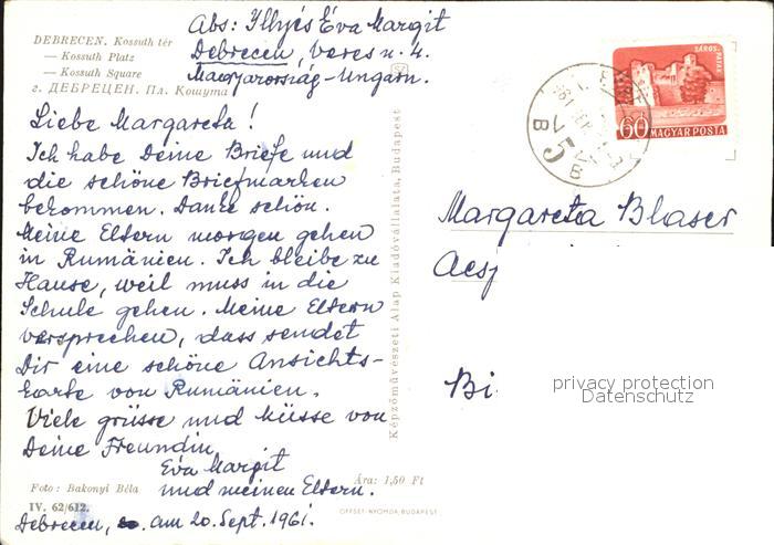 old postcard Debrecen Debrezin Kossruth Platz postalisch gelaufen Erhaltung siehe scans [KathaD79]