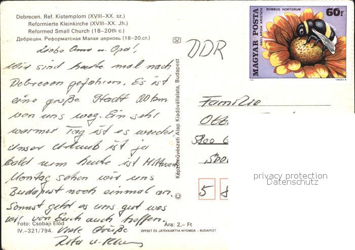Debrecen Debrezin Ref Kistemplom Reformierte Kleinkirche postalisch nicht gelaufen Erhaltung siehe scans
