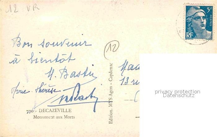12705835 carte postale Decazeville Aveyron Monument aux Morts Kriegerdenkmal postalisch gelaufen Erhaltung siehe scans [FriedD77] KatCode: 11170012312089