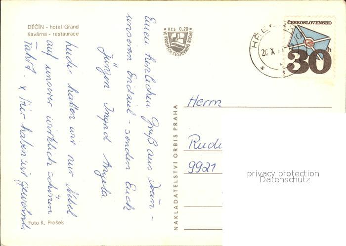 12551910 old postcard Decin Boehmen Hotel Grand postalisch gelaufen Erhaltung siehe scans [NatalD47] KatCode: 11520