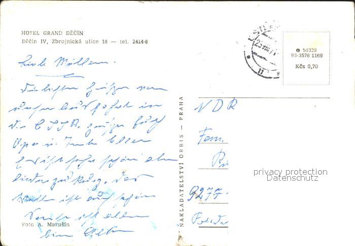 12446060 old postcard Decin Boehmen Hotel Grand Decin postalisch gelaufen Erhaltung siehe scans KatCode: 11520