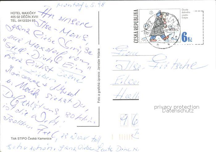 old postcard Decin Boehmen Hotel Maxicky postalisch gelaufen Erhaltung siehe scans