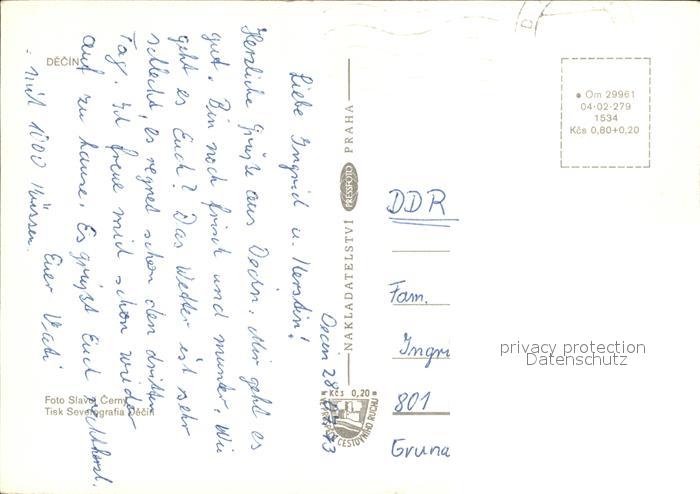 old postcard Decin Boehmen Panorama Elbebruecke Mittelgebirge postalisch gelaufen Erhaltung siehe scans