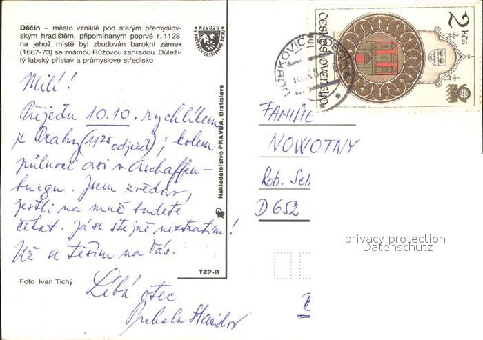 Decin Boehmen Park Bruecke Burg Schiffe postalisch nicht gelaufen Erhaltung siehe scans