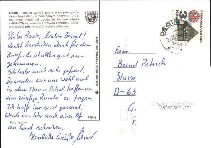 old postcard Decin Boehmen Park Brunnen Schloss Elbe postalisch gelaufen Erhaltung siehe scans