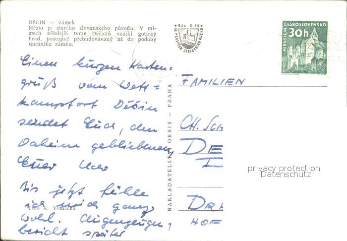 old postcard Decin Boehmen Schloss postalisch gelaufen Erhaltung siehe scans