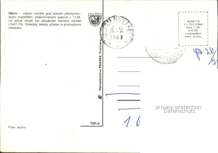 old postcard Decin Boehmen Strassenpartie Elbe Bruecke Gebaeude postalisch gelaufen Erhaltung siehe scans