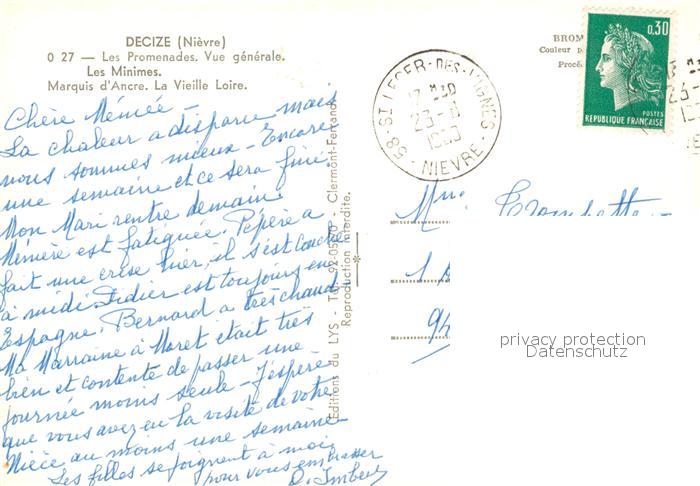 13593866 Decize Les Promenades Vue generale Les Minimes Marquis d’Ancre La Vieille Loire postalisch gelaufen Erhaltung siehe scans [WerneD78] carte postale Wern Katcode 11170058358095