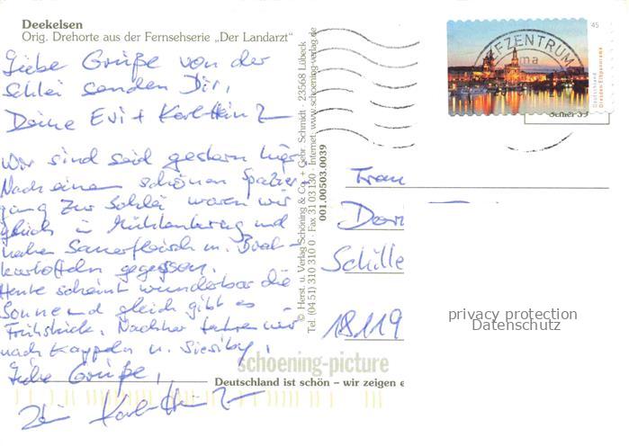 74099698 alte Postkarte Deekelsen Kappeln Schlei Schleswig-Holstein Markt Kirche Windmuehle Restaurant Gaststube postalisch gelaufen Erhaltung siehe scans [WerneD78] KatCode: 11110001059045