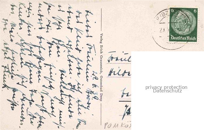 74019602 old postcard DEEP Greiffenberg Mrzezyno Ostseebad PL Rega Muendung postalisch gelaufen Erhaltung siehe scans [WerneD78] KatCode: 11410