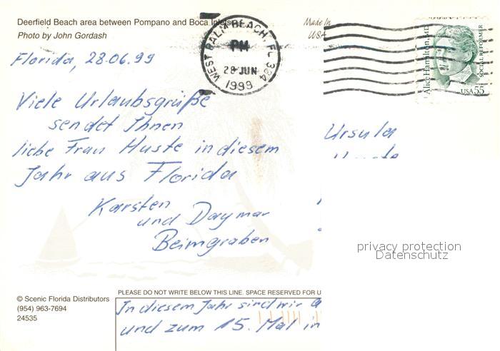 73573494 old postcard Deerfield Beach Aerial view postalisch gelaufen Erhaltung siehe scans [FriedD77] KatCode: 14140110000000
