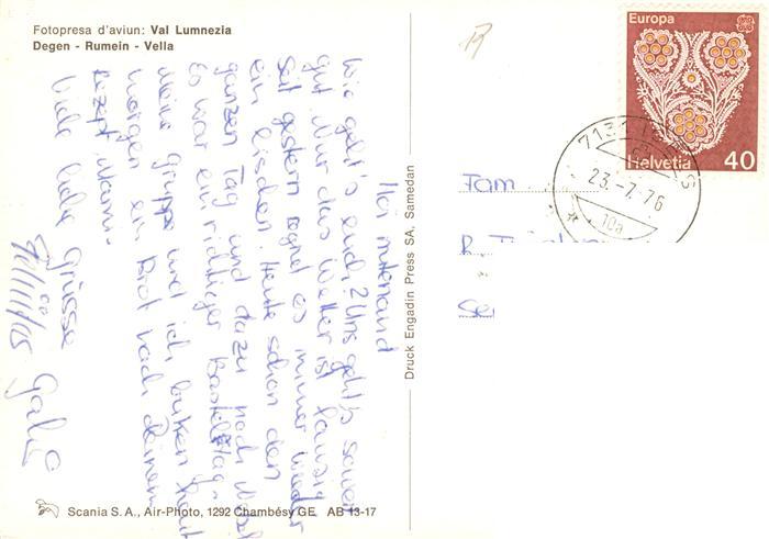 13890658 alte Postkarte Degen mit Rumein und Vella Fliegeraufnahme postalisch gelaufen Erhaltung siehe scans [WerneD78] KatCode: 11470100355432