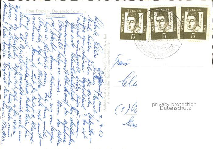 alte Postkarte Degerndorf Inn Haus Dapfer Pension Gaestehaus Blumenwiese Baumbluete postalisch gelaufen Erhaltung siehe scans
