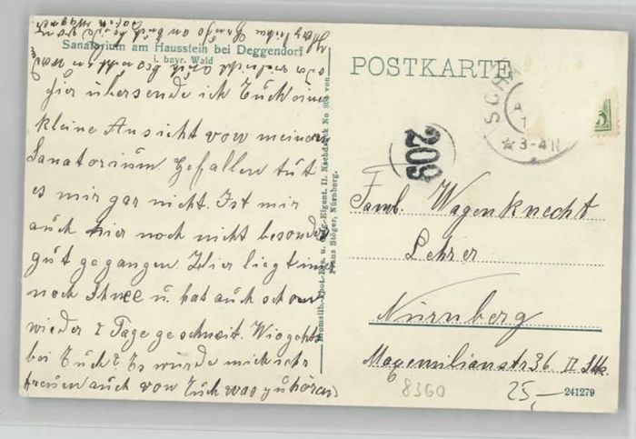 40221014 Deggendorf Donau Deggendorf Sanatorium Hausstein x 1915 KatCode 11110009271119