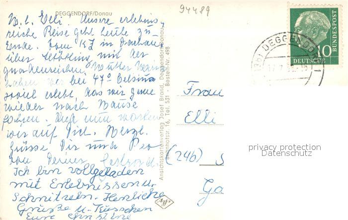 73734917 alte Postkarte Deggendorf Donau Donaubruecke Ortsansicht mit Kirche postalisch gelaufen Erhaltung siehe scans [FriedD77] KatCode: 11110009271119