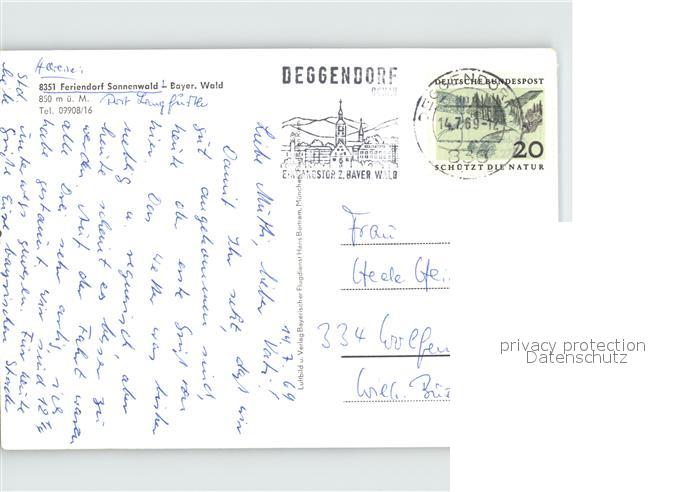 72399109 alte Postkarte Deggendorf Donau Feriendorf Sonnenwald postalisch gelaufen Erhaltung siehe scans KatCode: 11110009271119