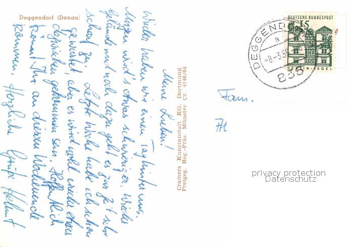 72667356 alte Postkarte Deggendorf Donau Fliegeraufnahme postalisch gelaufen Erhaltung siehe scans [AndreD76] KatCode: 11110009271119