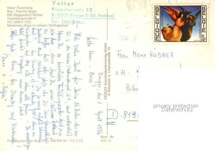 73085276 alte Postkarte Deggendorf Donau Hotel Thannberg postalisch gelaufen Erhaltung siehe scans [FriedD77] KatCode: 11110009271119