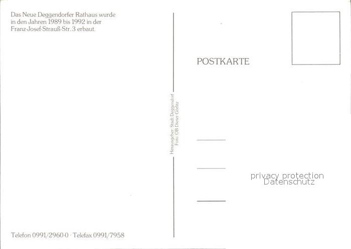 72323775 Deggendorf Donau Rathaus Franz Josef Strauss-Str. postalisch nicht gelaufen Erhaltung siehe scans KatCode: 11110009271119