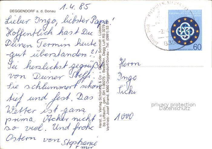72922019 alte Postkarte Deggendorf Donau Stadtansicht postalisch gelaufen Erhaltung siehe scans [MatthD68] KatCode: 11110009271119