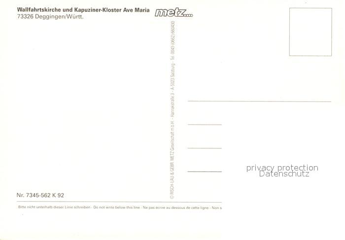 73080452 Deggingen Wallfahrtskirche Ave Maria Altar Heiligenfigur Geschichte postalisch nicht gelaufen Erhaltung siehe scans [FriedD77] KatCode: 11110008117014
