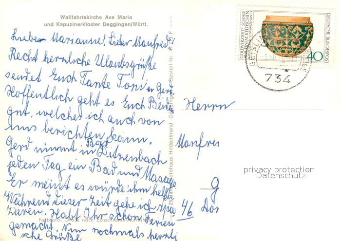 73596870 alte Postkarte Deggingen Wallfahrtskirche Ave Maria und Kapuzinerkloster postalisch gelaufen Erhaltung siehe scans [WerneD78] KatCode: 11110008117014