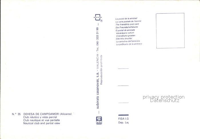Dehesa de Campoamor Nautical club postalisch nicht gelaufen Erhaltung siehe scans