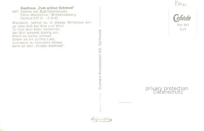 43495750 Dehme Gasthaus Zum wilden Schmied postalisch nicht gelaufen Erhaltung siehe scans [WerneD78] KatCode: 11110005770004