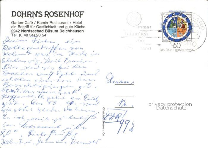 72571688 alte Postkarte Deichhausen Buesum Dohrns Rosenhof Hotel Restaurant postalisch gelaufen Erhaltung siehe scans [LiesaD40] KatCode: 11110001051014