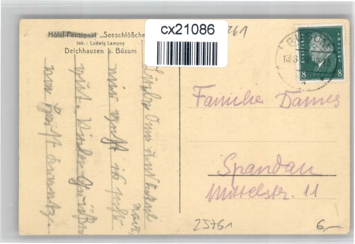 30740534 alte Postkarte Deichhausen Hotel Pensionat Seeschloesschen postalisch gelaufen KatCode: 11110003401000