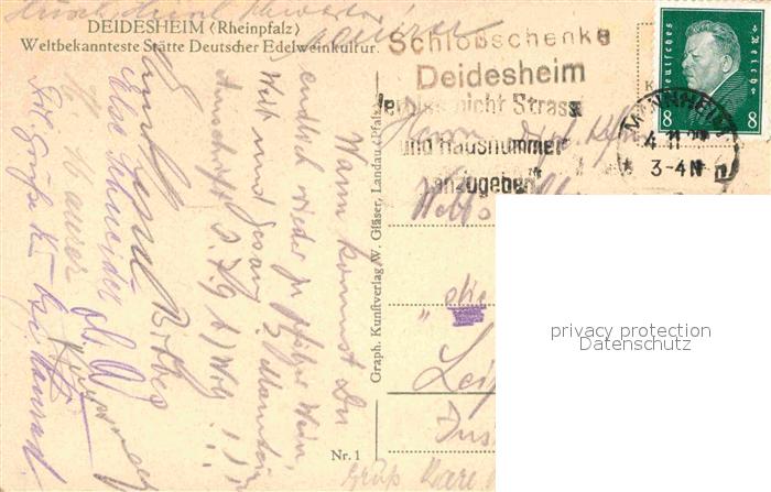 42621061 alte Postkarte Deidesheim Gesamtansicht postalisch gelaufen Erhaltung siehe scans [AndreD76] KatCode: 11110007332009
