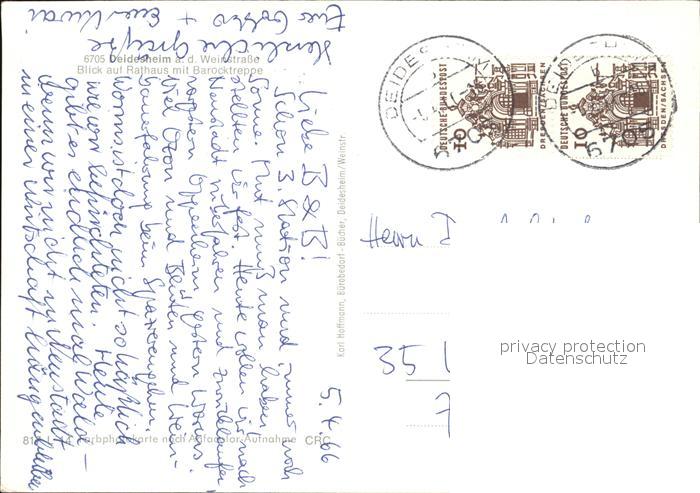 alte Postkarte Deidesheim Rathaus mit Barocktrepper postalisch gelaufen Erhaltung siehe scans