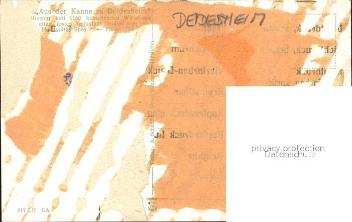 42584756 Deidesheim Wirtshaus Aus der Kanne Volkstrachten postalisch nicht gelaufen Erhaltung siehe scans [WerneD78] KatCode: 11110007332009