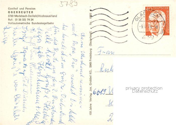 73867934 alte Postkarte Deifeld Medebach Gasthof Pension Oberreuter Panorama postalisch gelaufen Erhaltung siehe scans [WerneD78] KatCode: 11110005958028
