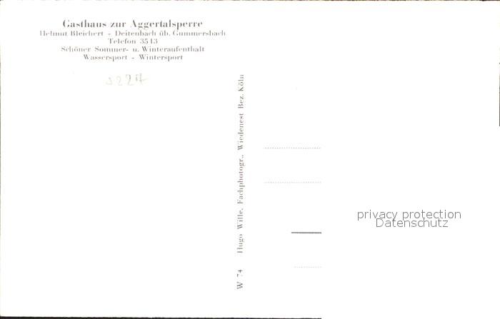 31720280 Deitenbach Gasthaus zur Aggertalsperre Helmut Bleichert postalisch nicht gelaufen Erhaltung siehe scans KatCode: 11110005374012